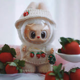 👖 Strawberry Overalls – Cream-colored crochet overalls featuring tiny hand-embroidered strawberries and adjustable-style straps