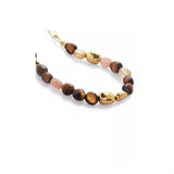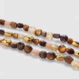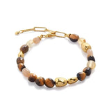 This exquisite bracelet features warm caramel-toned tiger's eye stones beautifully paired with vibrant turquoise gems. The combination creates a striking contrast, offering a balance of earthy elegance and colorful charm.