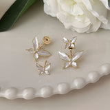 These elegant butterfly earrings feature a delicate white glaze finish, reflecting refined taste and sophistication. Designed for versatility, they can be worn as classic studs or styled in multiple ways to suit various occasions.
