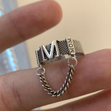 This exquisite ring features a unique vintage design crafted from authentic 925 sterling silver. Highlighting a distinctive letter 'M' integrated with a chic chain motif, it embodies understated luxury and individuality.