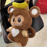This adorable Banana Monkey outfit is specially designed for the sitting 2nd Gen Labubu dolls, transforming your doll into a cute monkey complete with a banana headpiece and a soft brown suit. Whether hung on your bag or displayed on a shelf, it adds a playful touch to your collection!