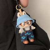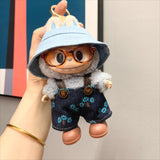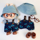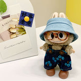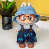 This adorable Floral Denim Overalls Set for 17cm Labubu dolls includes a cute denim overall with floral patterns, a stylish bucket hat, fashionable glasses, and brown shoes. Perfect for adding a fresh and fashionable touch to your doll's wardrobe!