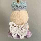 This handcrafted outfit is a dreamy addition to any doll's wardrobe. Featuring a lilac-toned crochet dress with front bow, a soft openwork butterfly on the back, and a beaded crown, it’s made for fairy tale looks and magical photo moments.