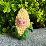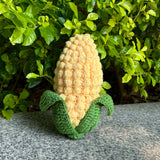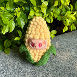 1️⃣ Handmade crochet corn body (yellow with textured corn kernels)