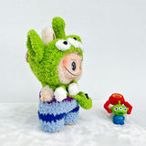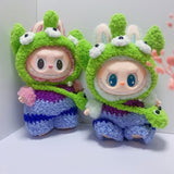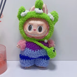 This fun and fuzzy 3-piece outfit set turns your doll into the quirkiest space explorer! Featuring a green triple-eye hood, colorful striped pants, and a matching alien-themed bag — it’s the perfect combo for intergalactic cuteness. 👽💫