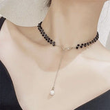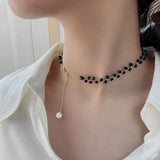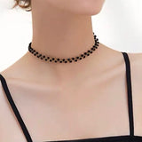 Elevate your style with this elegant French-inspired black crystal necklace. Featuring a sleek and adjustable slide design, this lightweight piece offers a refined touch to any outfit.