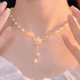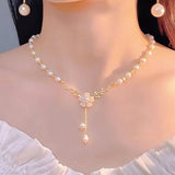 The luminous pearls and intricately designed flower detail offer a subtle yet luxurious touch, perfect for adding grace to any outfit. Ideal for special occasions or daily wear, this necklace brings a refined and unique flair to your jewelry collection.