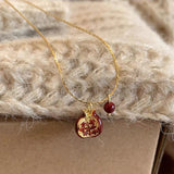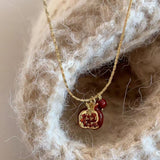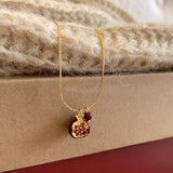 Embrace timeless elegance with this vintage-inspired pomegranate pendant necklace. Crafted with intricate detail, the deep red pomegranate symbol adds a touch of sophistication and warmth, perfect for autumn and winter seasons.