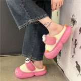Step into cozy comfort with these adorable fuzzy slippers featuring oversized eyes that add a playful touch. Designed with a non-slip sole for safe indoor and casual outdoor wear, these slip-on slippers keep your feet warm and stylish. Perfect for lounging at home or quick errands, their plush material and covered toe design ensure both softness and warmth throughout the day.