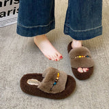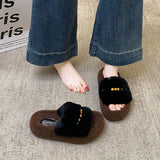 Experience ultimate comfort and warmth with these cozy fleece-lined slide slippers. Designed for women, these slip-on slippers feature a soft, plush interior that keeps your feet snug during chilly autumn and winter days. The anti-slip sole ensures safety for both indoor and outdoor wear, while the simple one-band design offers easy on-and-off convenience. Perfect for relaxing at home or quick errands, these slippers combine style and functionality to keep you warm and comfortable.