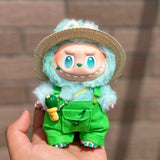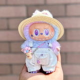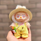 Straw Hat & Overalls Outfit for Labubu Dolls (No Doll)