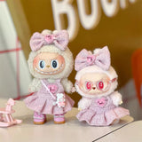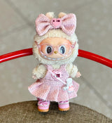 Dress your 17cm Labubu in sweet elegance with this Pink Premium Fashion Dress Set! Featuring a soft-textured pleated skirt, oversized bow, and heart-shaped button detail, this outfit brings a stylish and girly touch to your collection. Perfect for display, styling, or gifting.